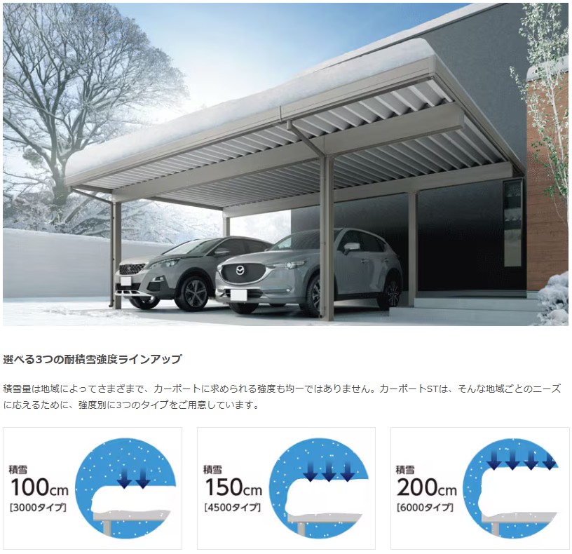 今回設置したのはLIXIL カーポートST 耐積雪100㎝タイプ。