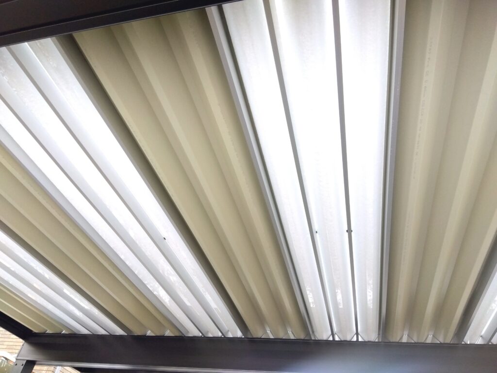 今回は明るさを保つために光を通す採光屋根材(ポリカ)も使用しました。